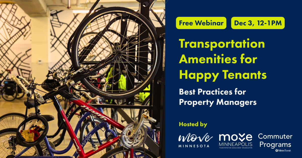 Discover best practices that benefit property managers and their tenants at this webinar. Hosted by Move Minneapolis, Move Minnesota, and Commuter Programs with Metro Transit.