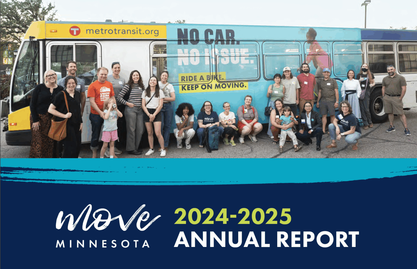 Over the past year, we continued our powerful Livable Lyndale campaign to ensure the once-in-a-generation road reconstruction of the critical Minneapolis corridor prioritizes people over the past. In Saint Paul, we engaged with dozens of developers and employers — and hundreds of community members — to promote biking, walking and using public transit. And our affiliate, Move Minnesota Action, worked to make public transit a top election issue in municipal elections in Minneapolis and Saint Paul.