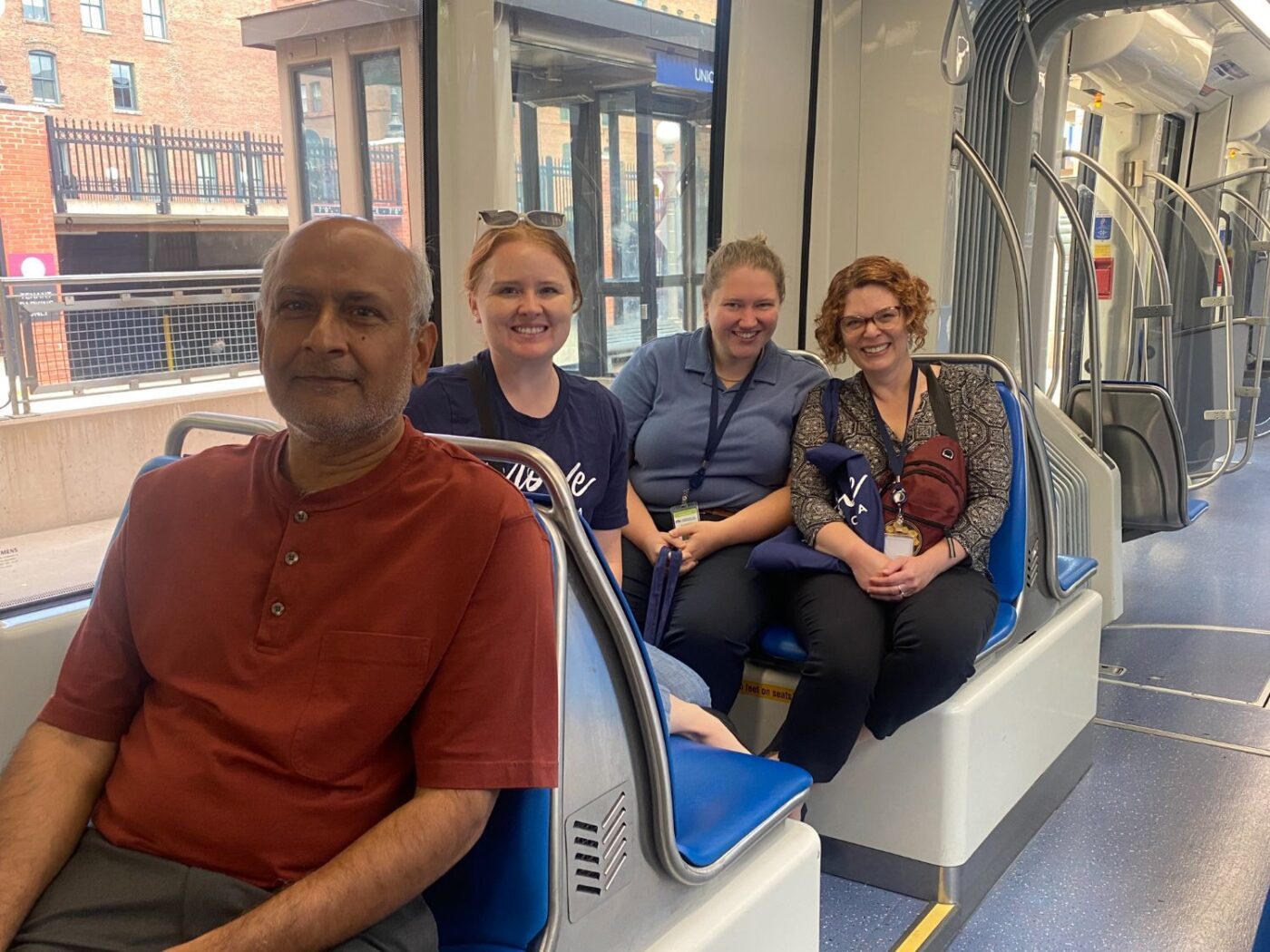In the fall, we hosted two custom Transit Tours on the Green Line for MnDOT employees. It was more than just a ride—it was a chance to explore, learn, and build confidence together. We covered everything from purchasing tickets and station amenities to understanding the difference between the METRO Network and local buses. We also learned about valuable programs like Guaranteed Ride Home and nearby infrastructure like the Capitol City Bikeway.